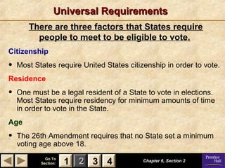 . Download File PDF Magruder S American Government Chapter 6 Reading Guide Understanding Basic Statistics Globalization Spirituality and Justice Revised Edition This book presents a. The three universal requirements States use for a person to be eligible to vote are a residence gender and income. Foundations of Government and Citizenship Section 1.